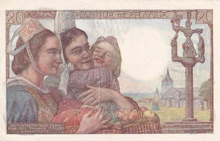 Home > French Banknotes > Bank of France Banknotes > 20 Francs Banknotes > Fisherman Type 1942 (1942-1950) > France 20 Francs - Fisherman - 09-02-1950 - Serial S.244 - P.100