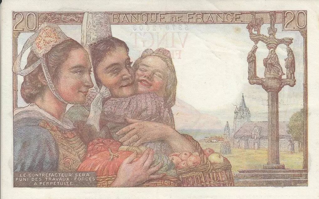Banknote France 20 Francs fisherman - 10-03-1949 - Serial E.216