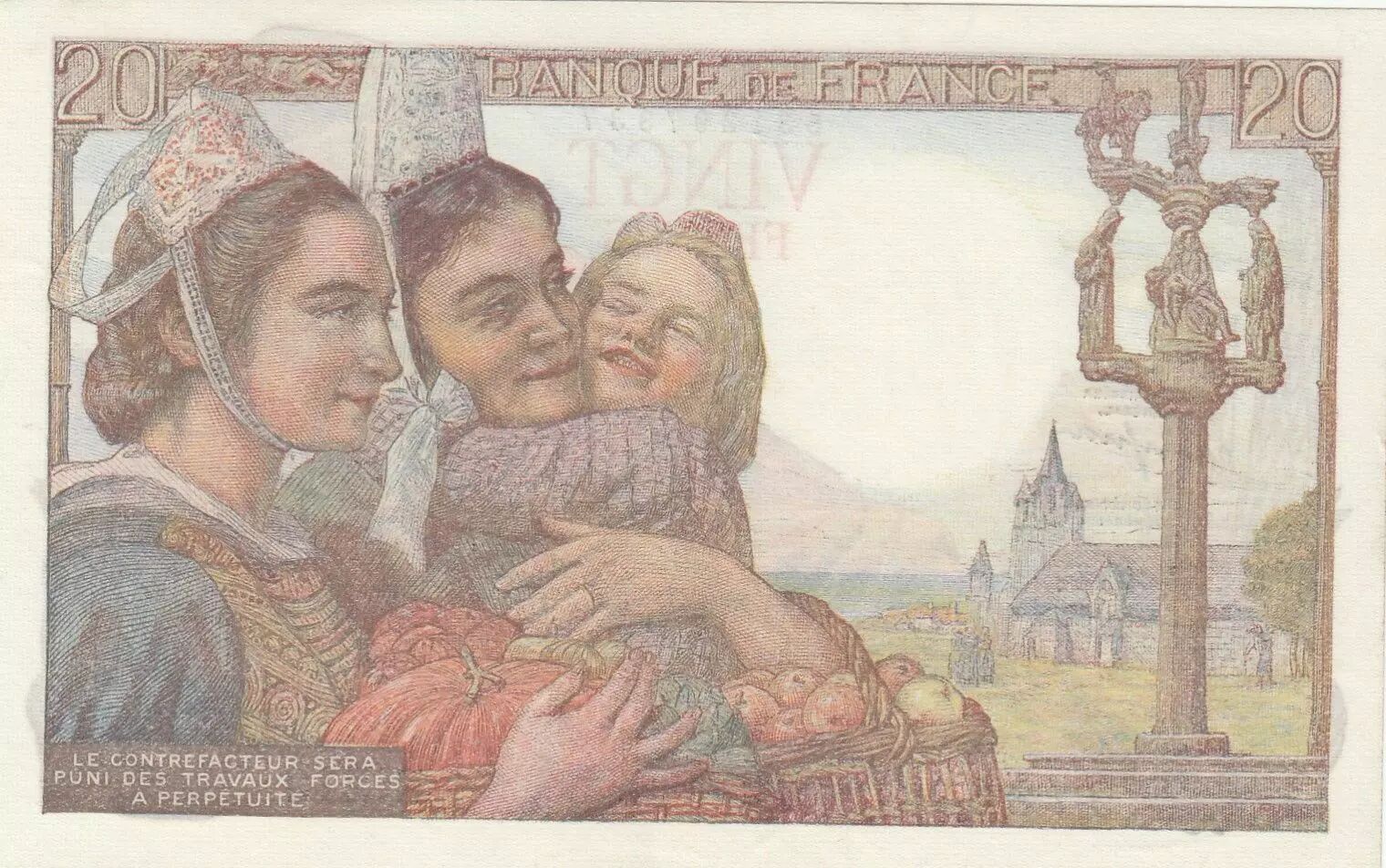 Banknote France 20 Francs - fisherman - 10-03-1949 - Serial N.213
