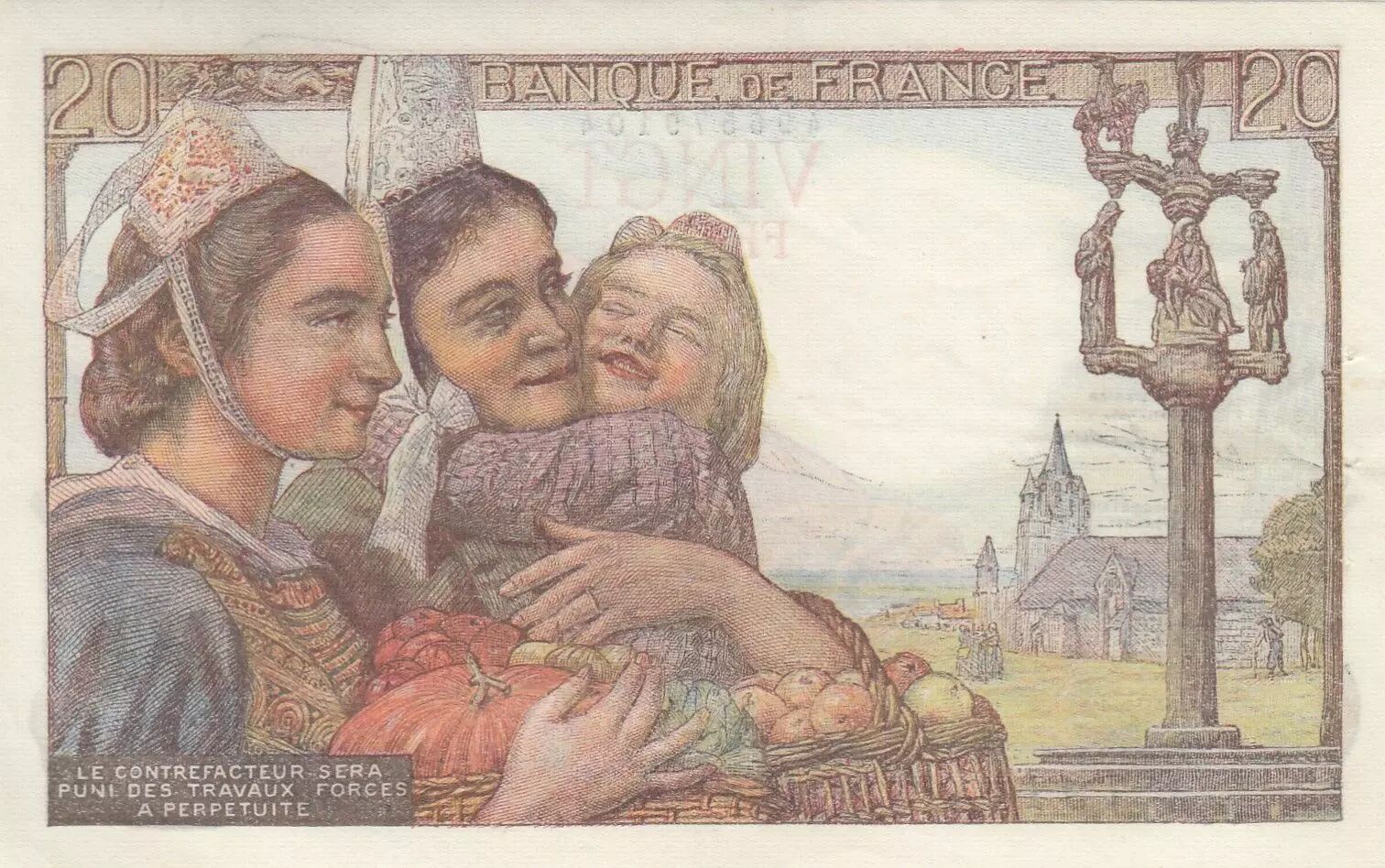 Banknote France 20 Francs - fisherman - 10-03-1949 - Serial Q.199