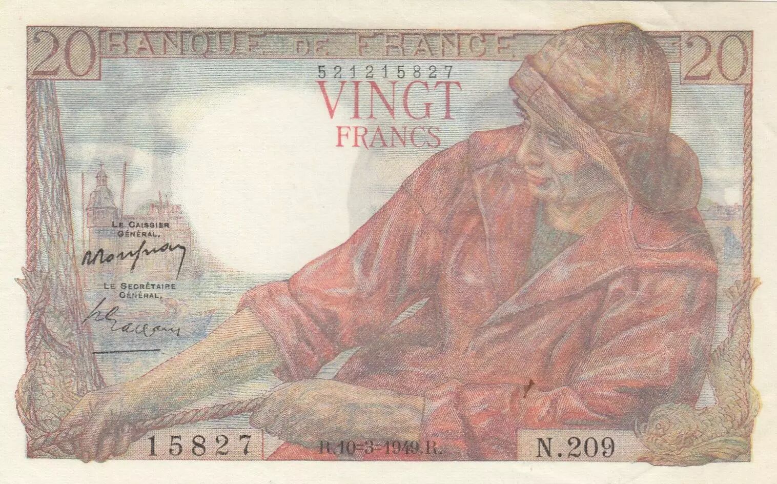 Banknote France 20 Francs - Fisherman - 10-03-1949 - Série N.209