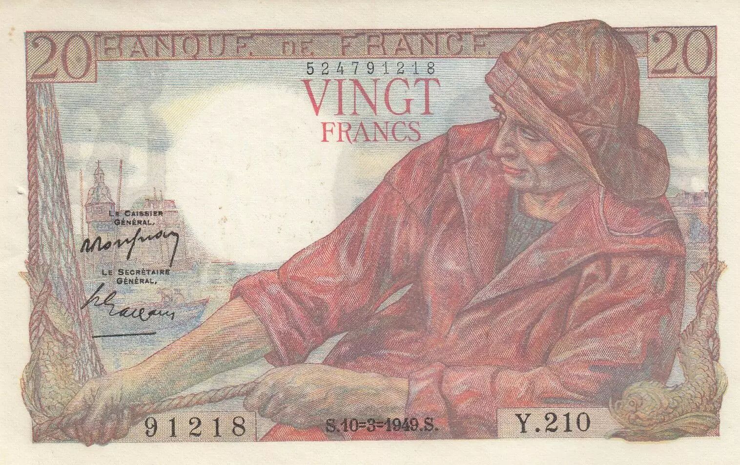 Banknote France 20 Francs - Fisherman - 10-03-1949 - Série Y.210
