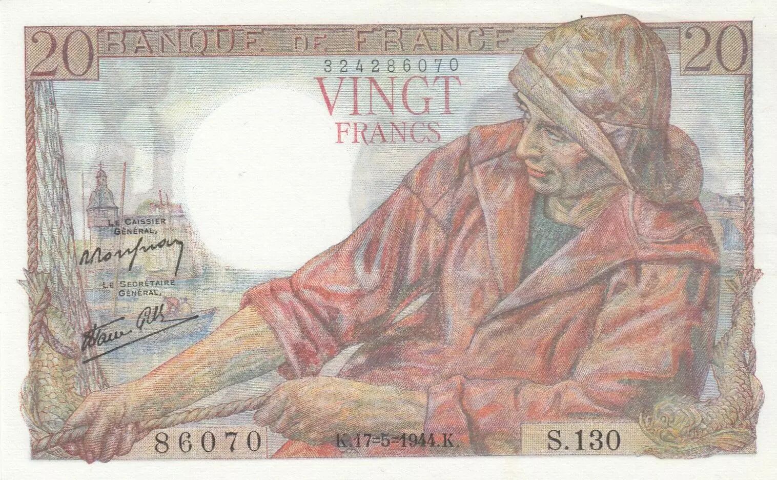 Home > > France 20 Francs - Fisherman - 17-05-1944- Serial S.130