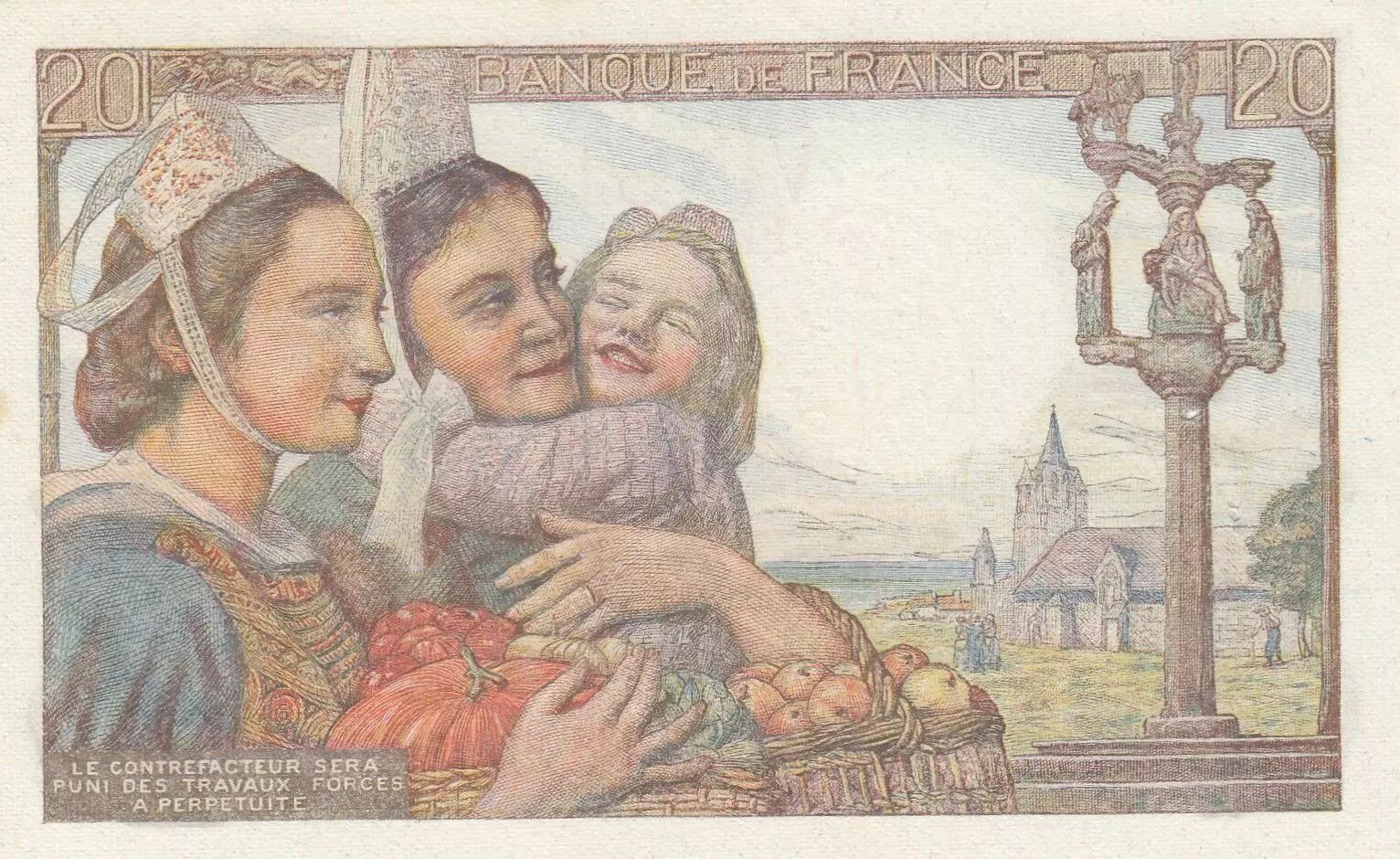 Banknote France 20 Francs - Fisherman - 17-05-1944- Serial X.132