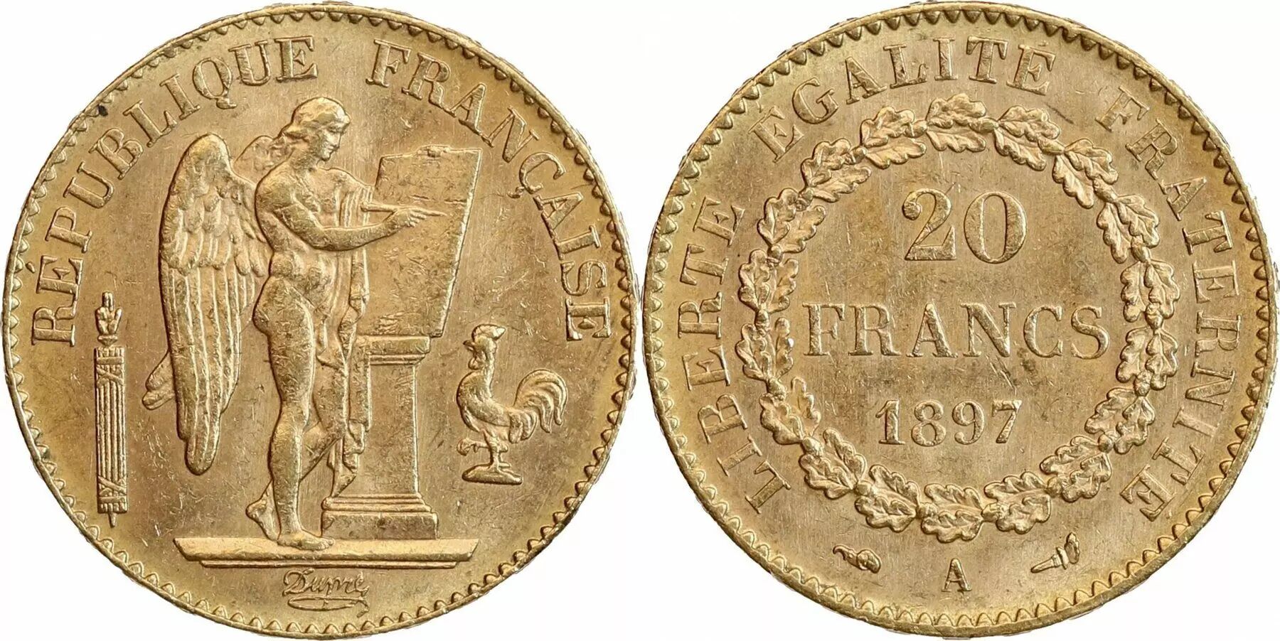 Coin France 20 Francs Gold Genius - 1897 A Paris