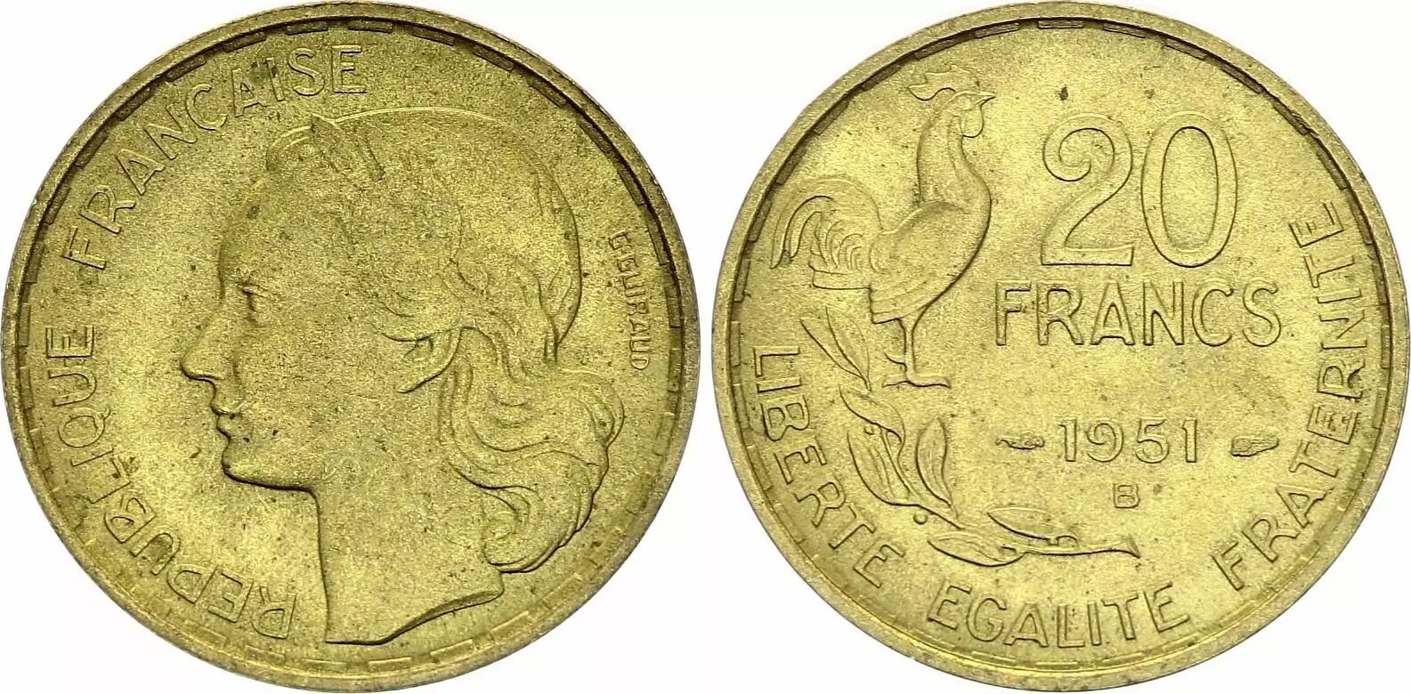 Pièce France 20 Francs Guiraud - 1951 B Beaumont - Le Roger