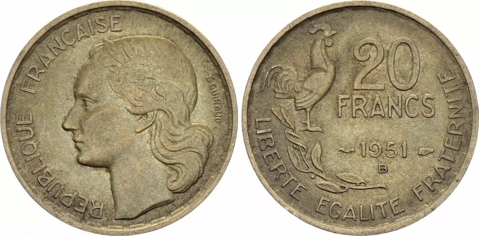 Home > French coins (470 à 2002) > Modern Currencies (1789 to 2002) > 20 Francs > France 20 Francs Guiraud - 1951 B Beaumont - Le Roger