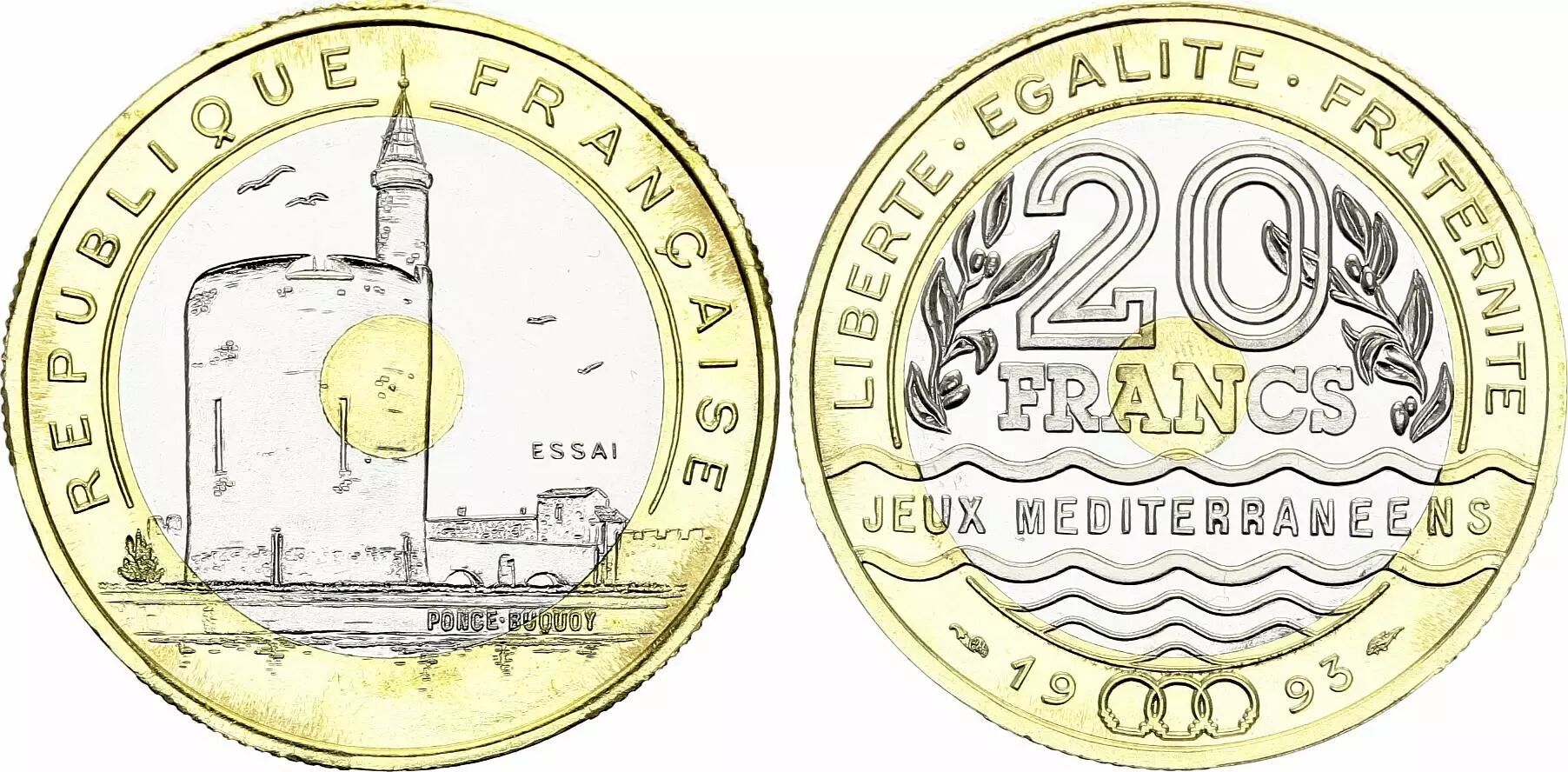 Pièce France 20 Francs, Jeux Méditerranéens - 1993 Essai