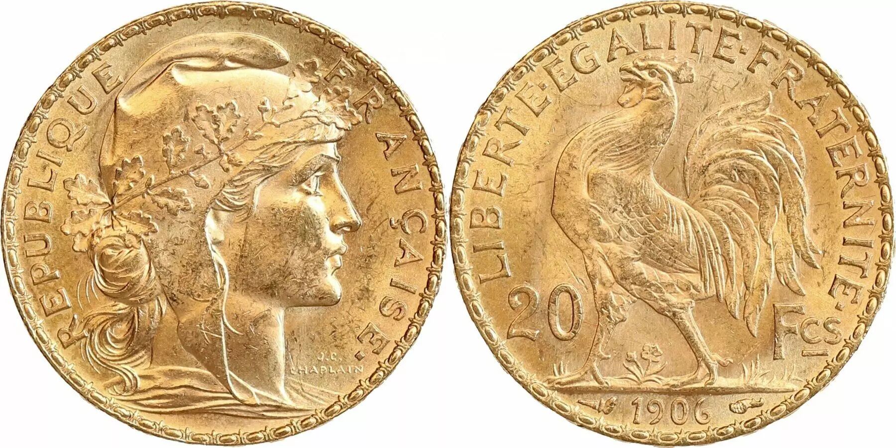 Coin France 20 Francs, Marian - Rooster 1906 - Gold