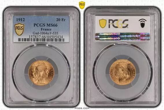 The 20 Franc Marianne - Coq de 1912 gold coin, certified PCGS MS 66, embodies numismatic excellence. With its exceptional state of preservation, this coin is a precious testimony to French craftsmanship and monetary history. Its high grade attests to its remarkable quality, making it a real gem for collectors and passionate investors.