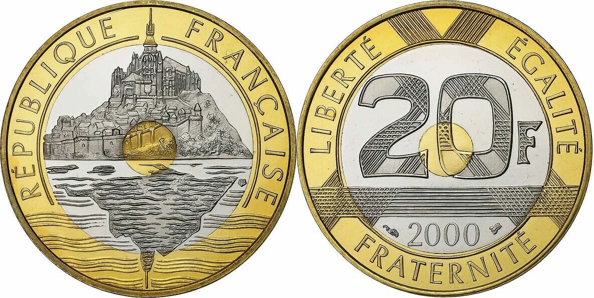 Cette pièce commémorative de la France, frappée en 2000, est dédiée au Mont Saint-Michel. Elle possède une valeur faciale de 20 francs.