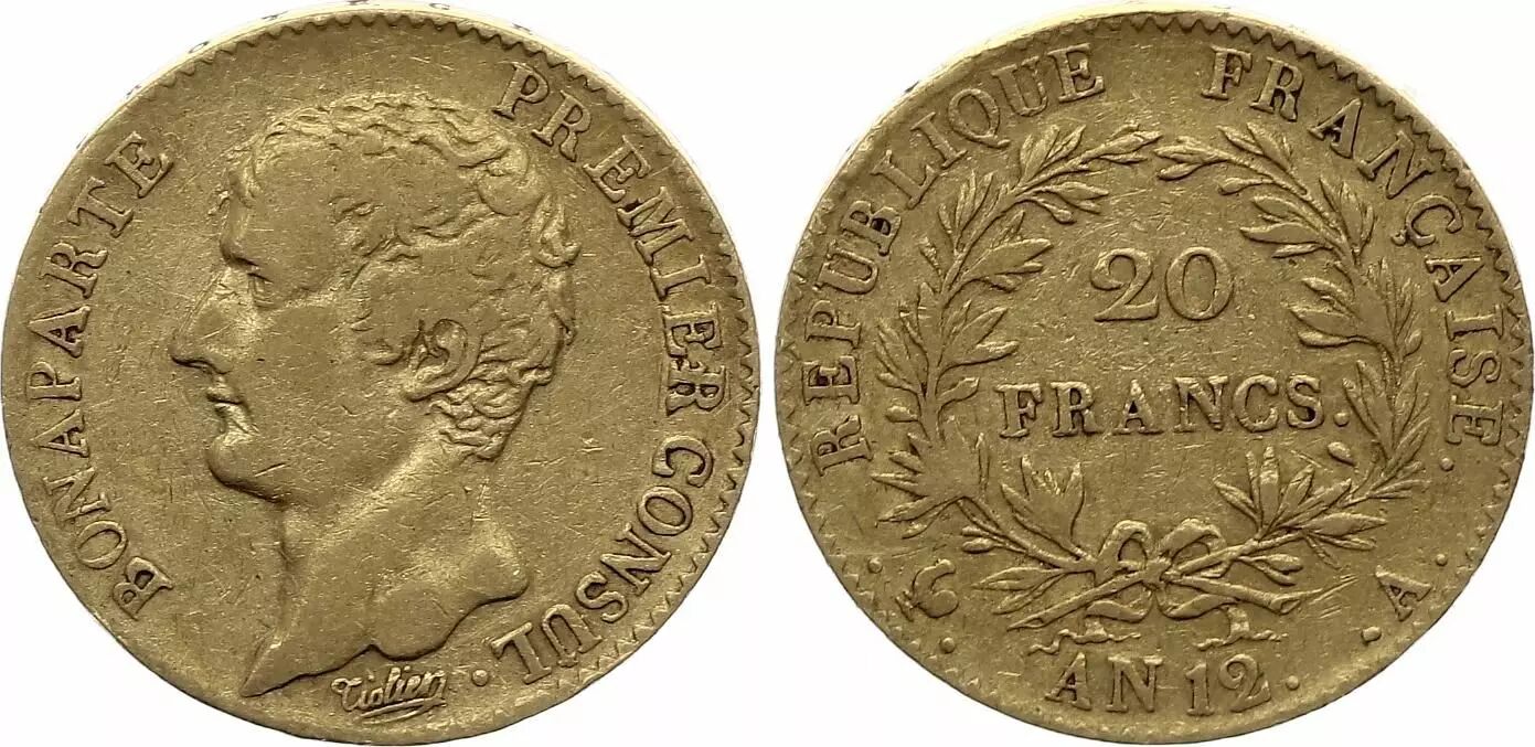 Home > > France 20 Francs - Napoleon I - Premier Consul - An 12 A Paris - gOLD