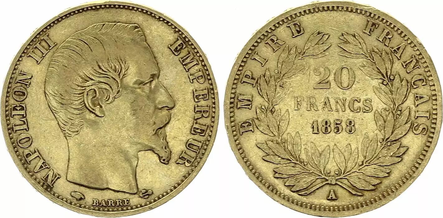 Accueil > Archivage > France 20 Francs Napoléon III Tête nue - 1858 A Paris - Or