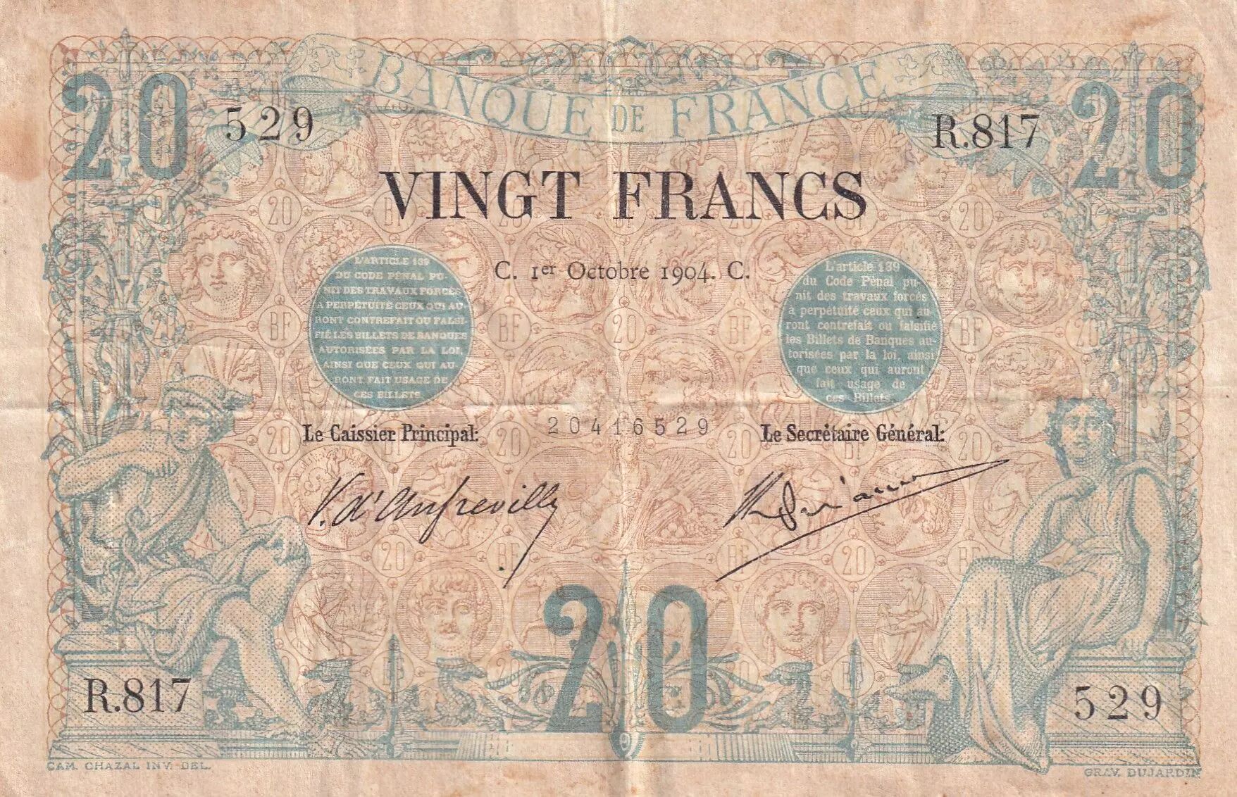 plis, épinglages, salissures, quelques coupures, billet usagé, billet tâché
