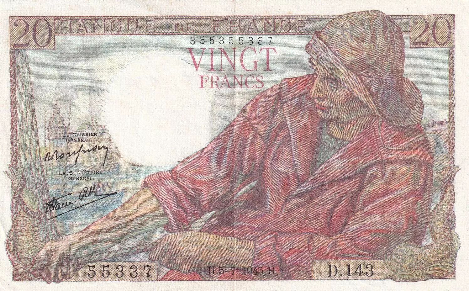 Billet France 20 Francs - Pêcheur - 05-07-1945 - Série D.143 - F.13.10