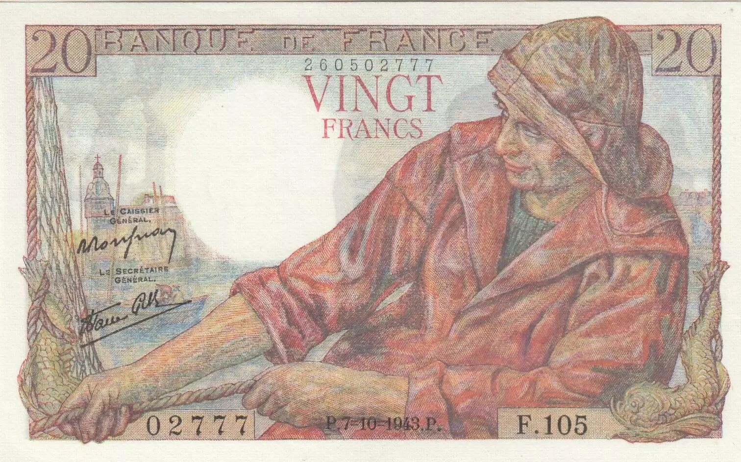 Billet France 20 Francs - Pêcheur - 07-10-1943 - Série F.105