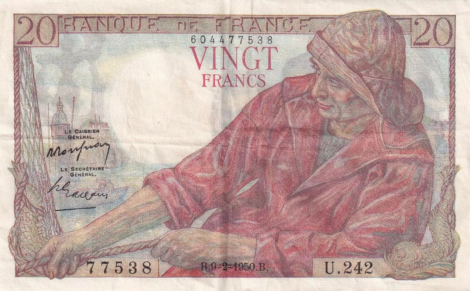Billet France 20 Francs - Pêcheur - 09-02-1950 - Série U.242