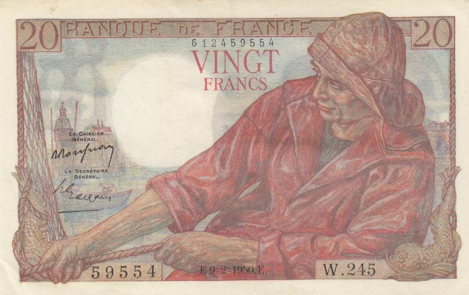 Billet France 20 Francs - Pêcheur - 09-02-1950 - Série W.245
