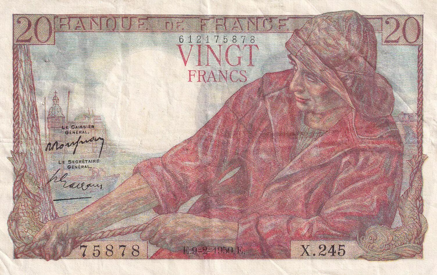Billet France 20 Francs - Pêcheur - 09-02-1950 - Série X.245 - F.13.17
