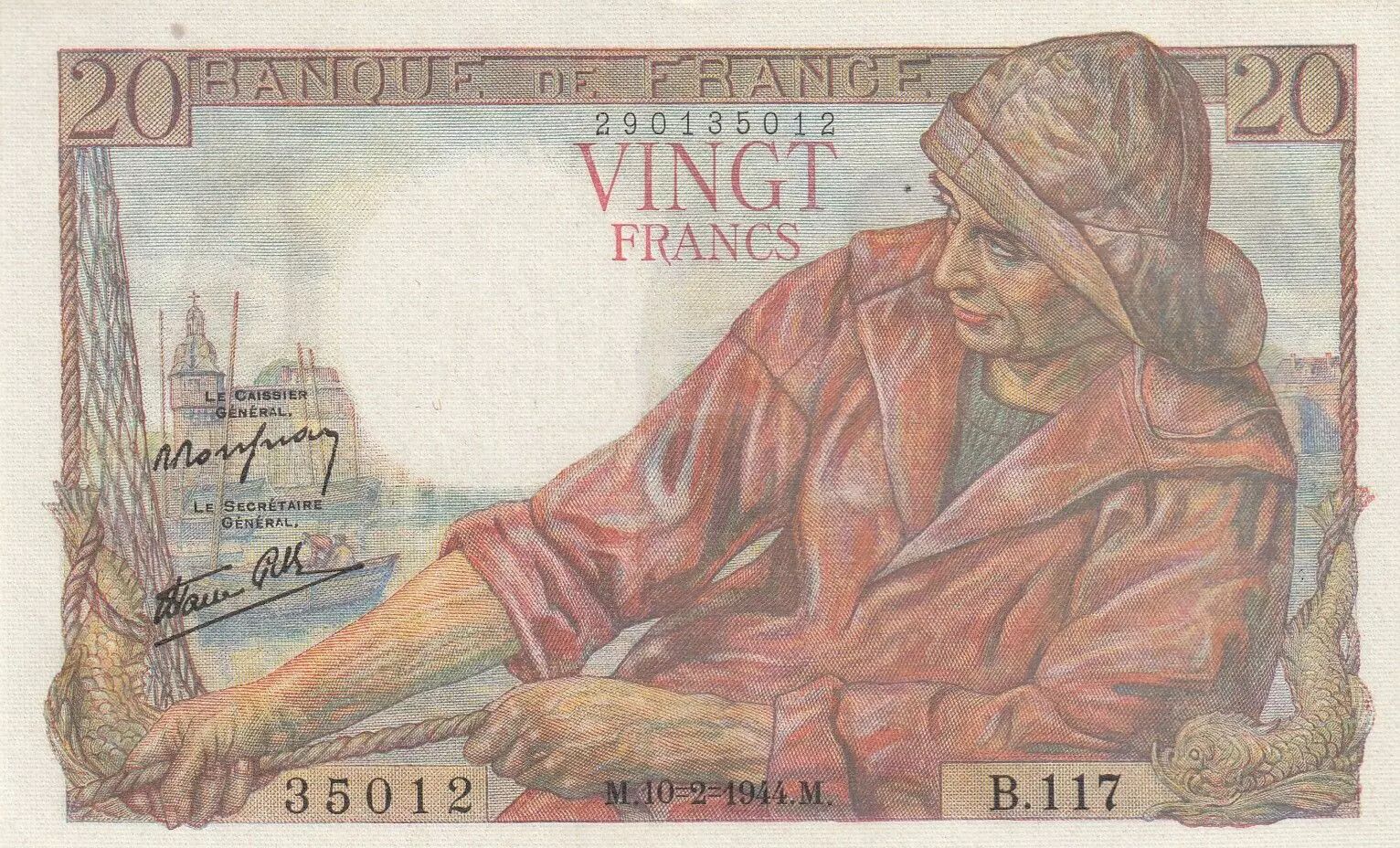 Billet France 20 Francs - Pêcheur - 10-02-1944 - Série B.117
