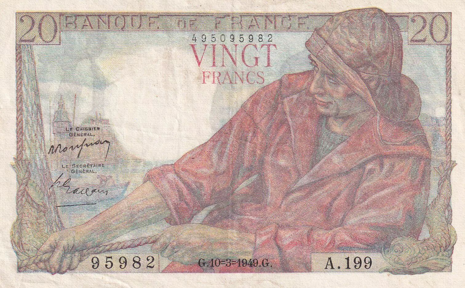 Billet France 20 Francs - Pêcheur - 10-03-1949 - Série A.199 - F.13.14