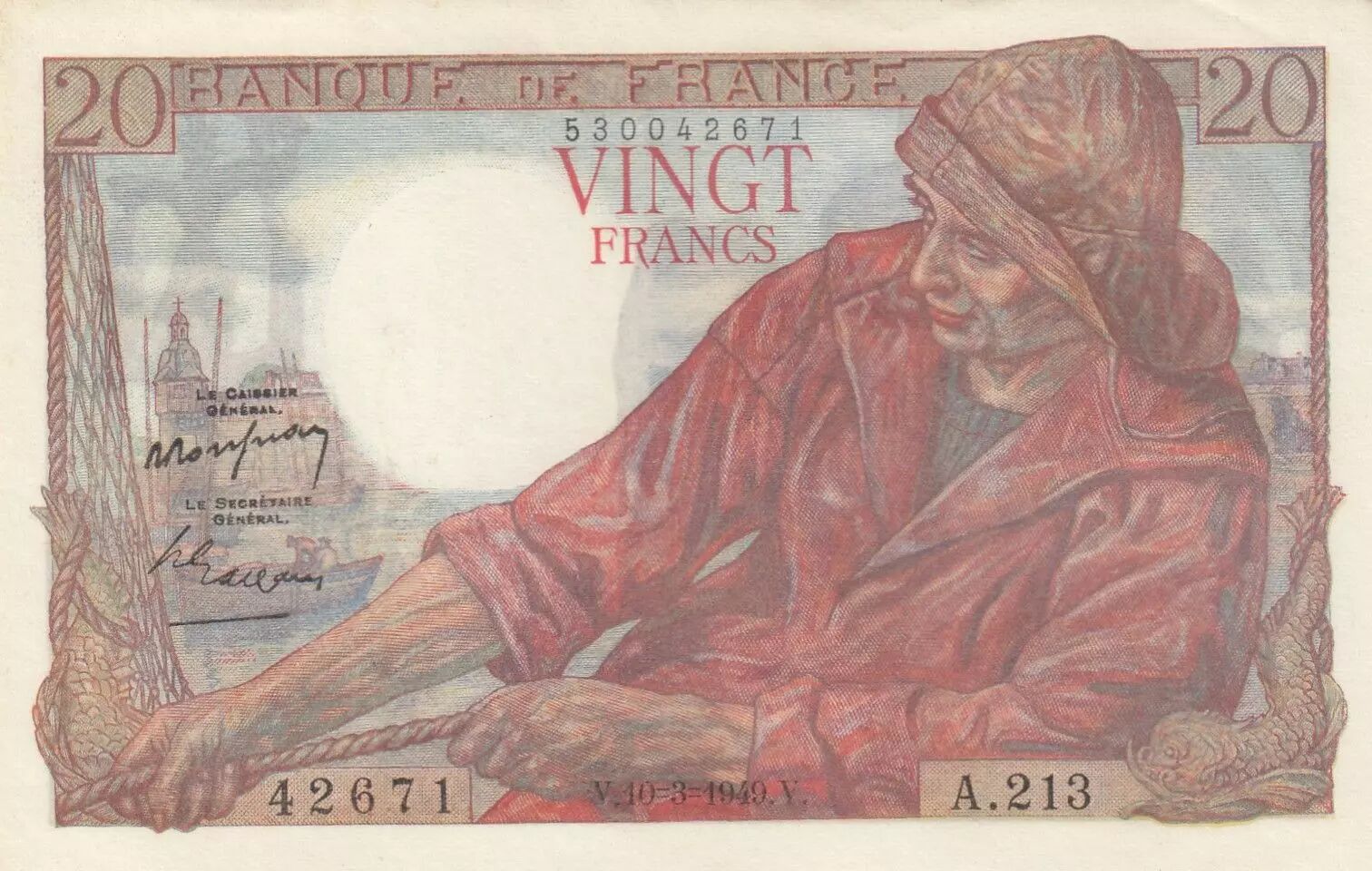 Accueil > Archivage > archivage-Billets Français > France 20 Francs - Pêcheur - 10-03-1949 - Série A.213