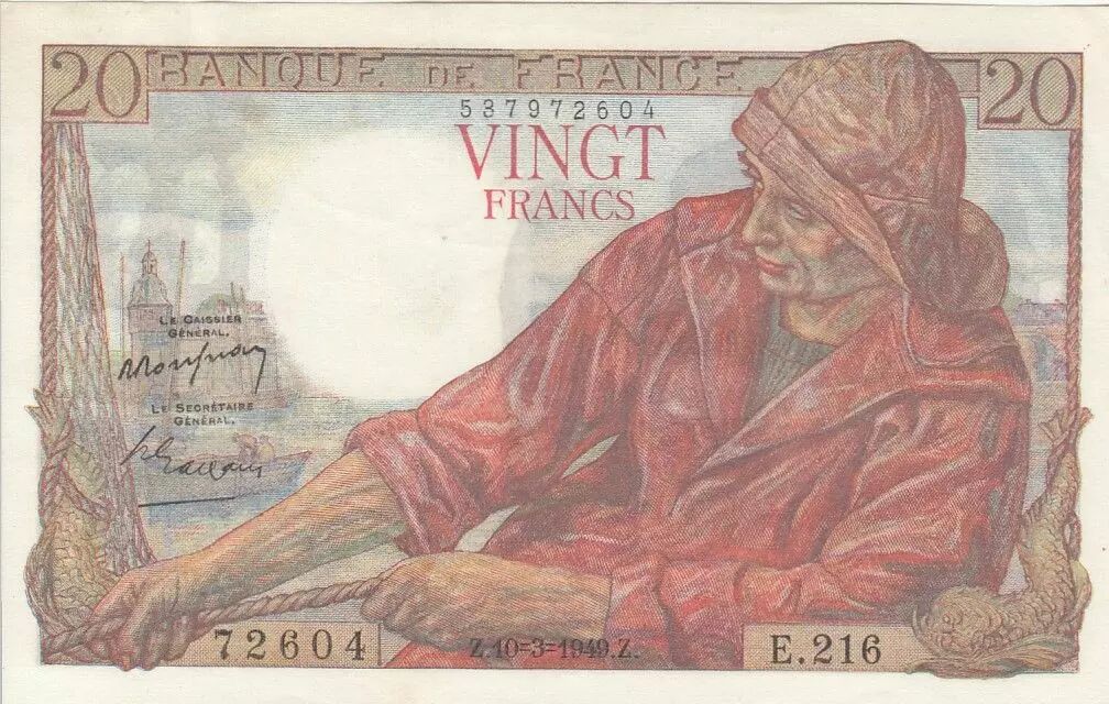 Billet France 20 Francs Pêcheur - 10-03-1949 - Série E.216