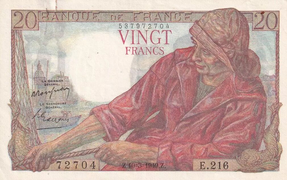 Billet France 20 Francs Pêcheur - 10-03-1949 - Série E.216