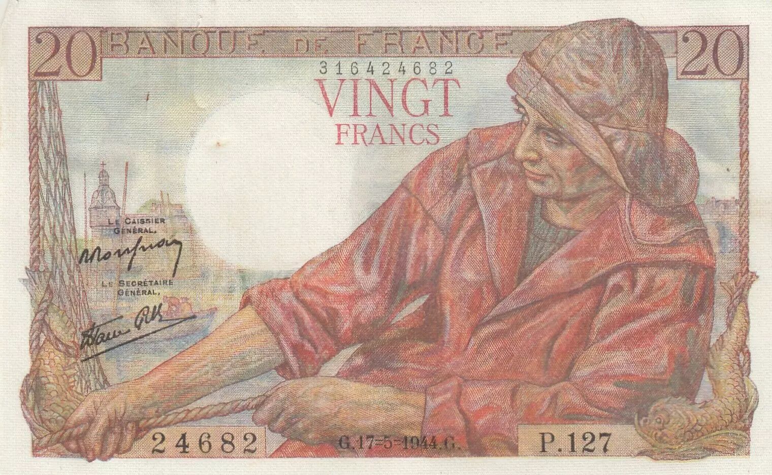 Billet France 20 Francs - Pêcheur - 17-05-1944 - Série P.127