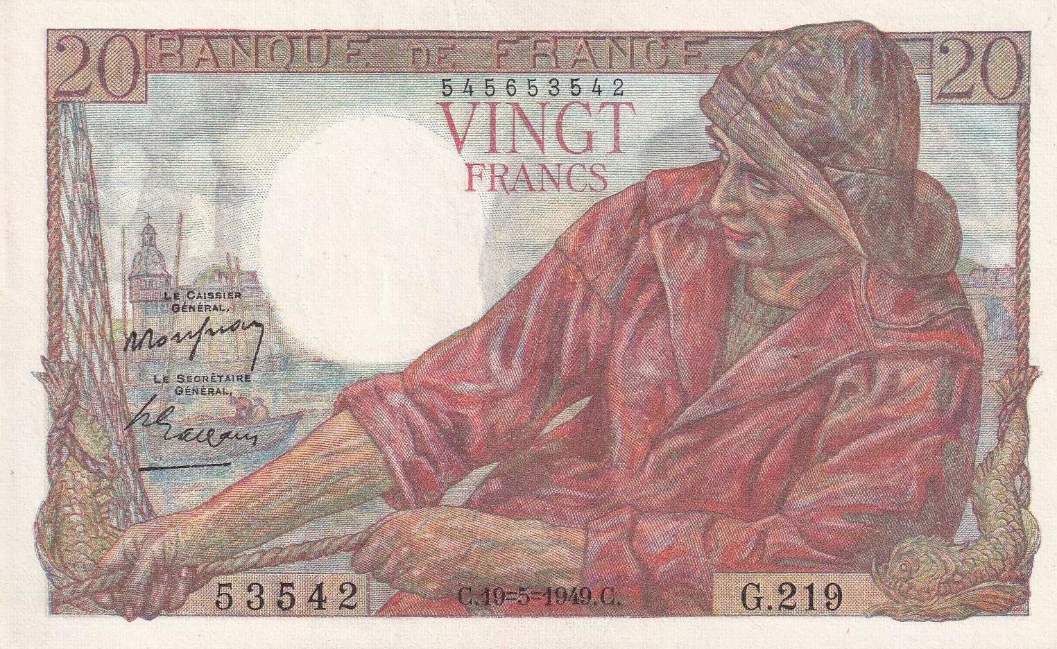 Accueil > Archivage > France 20 Francs - Pêcheur - 19-05-1949 - Série G.219 - SUP+ - F.13.15