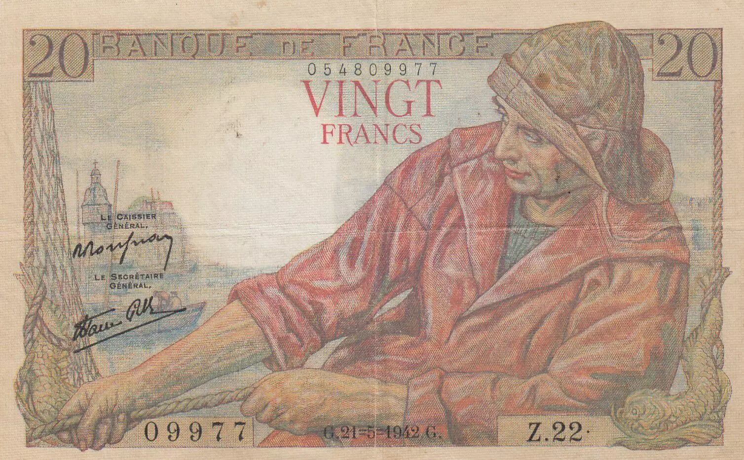 Accueil > Archivage > France 20 Francs - Pêcheur - 21-05-1942 - Série Z.22 - F.13.02