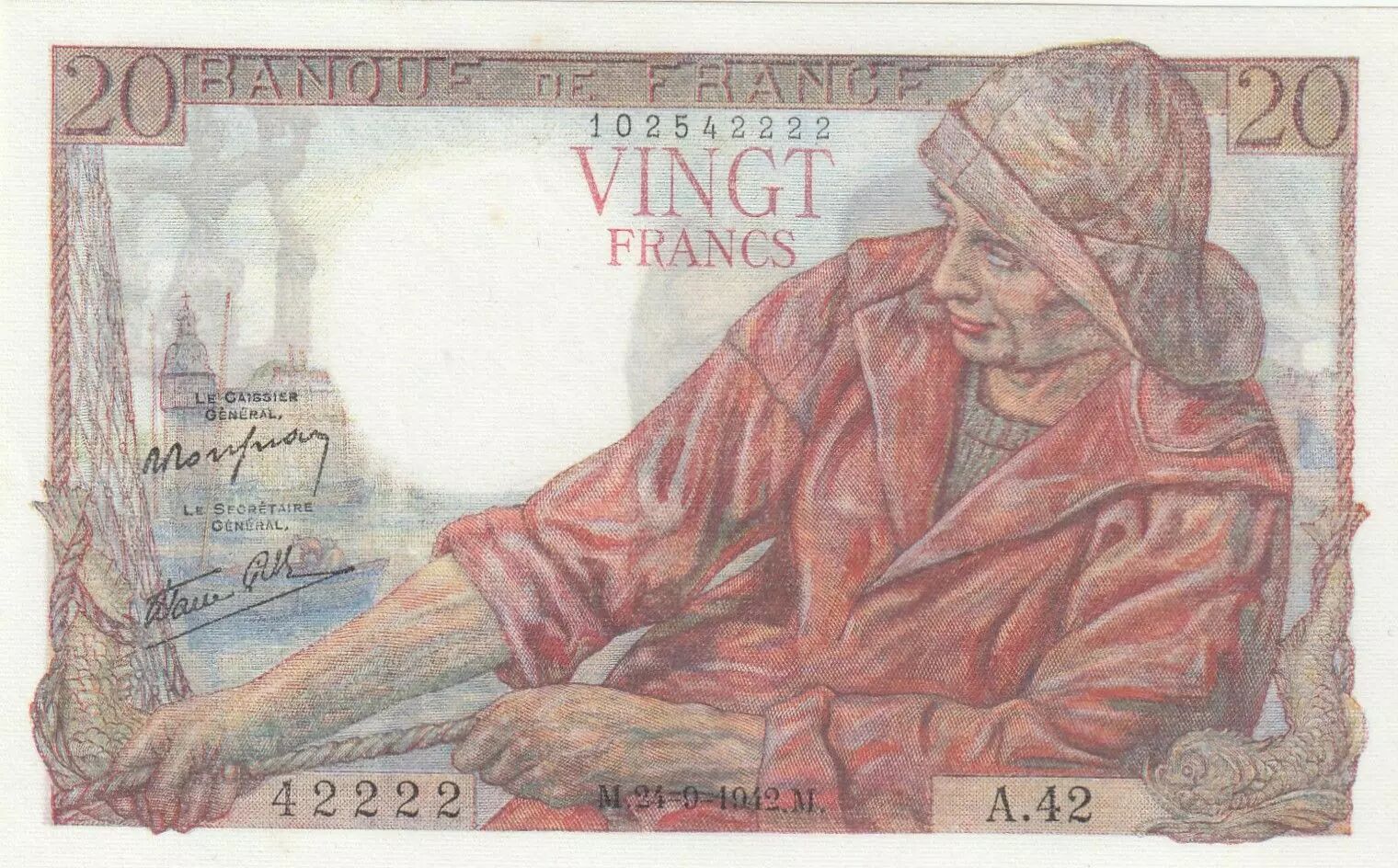 Billet France 20 Francs - Pêcheur - 24-09-1942 - Série A.42