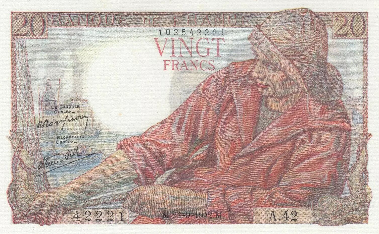 Billet France 20 Francs - Pêcheur - 24-09-1942 - Série A.42