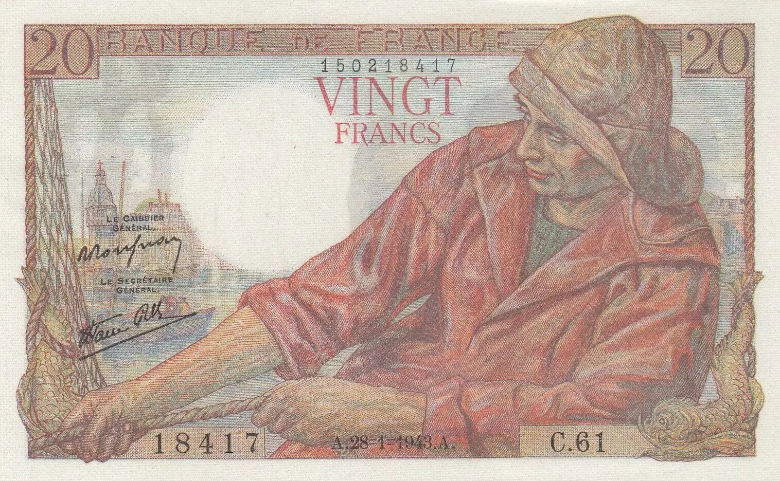 Billet France 20 Francs - Pêcheur - 28-01-1943 - Série C.61