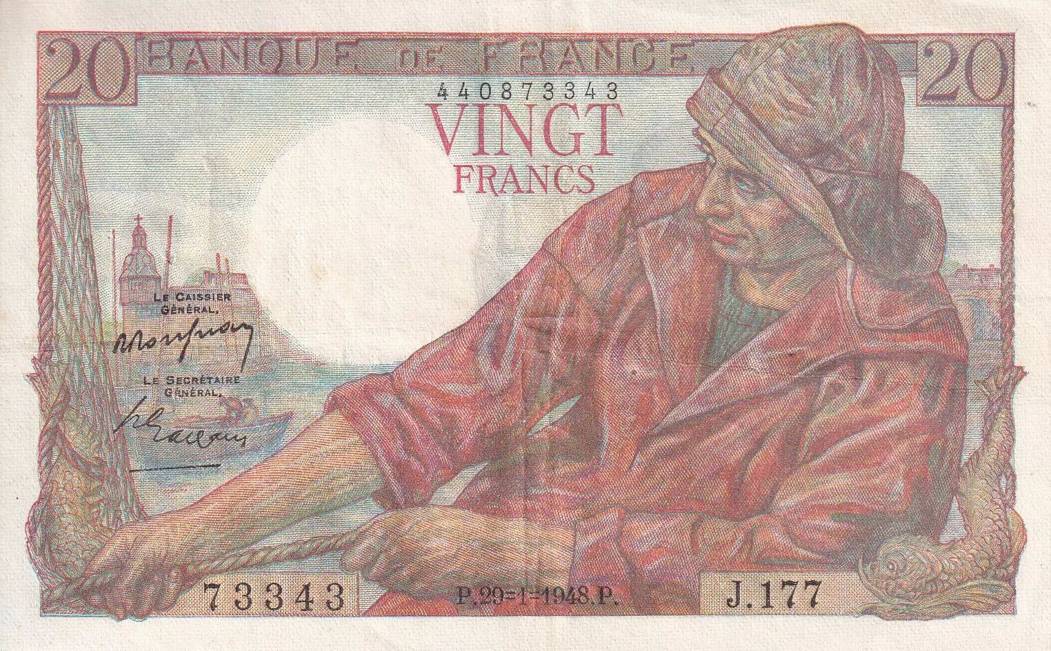 Billet France 20 Francs - Pêcheur - 29-01-1948 - Série J.177 - F.13.12