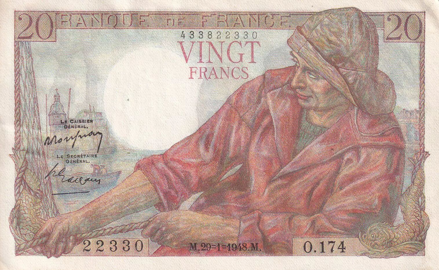 Accueil > Archivage > France 20 Francs - Pêcheur - 29-01-1948 - Série O.174 - SPL - F.13.12