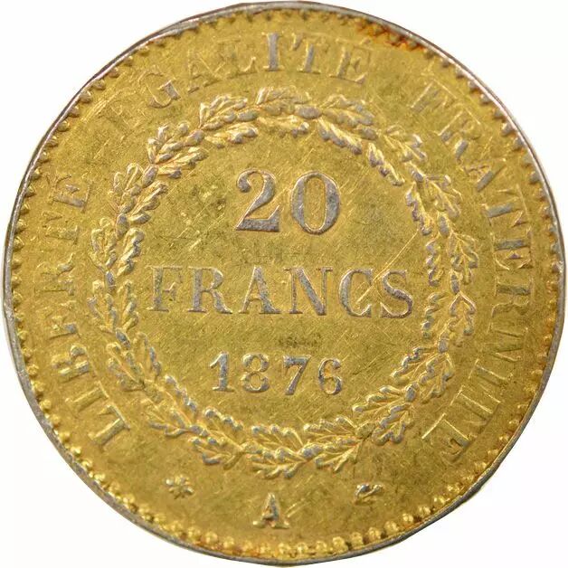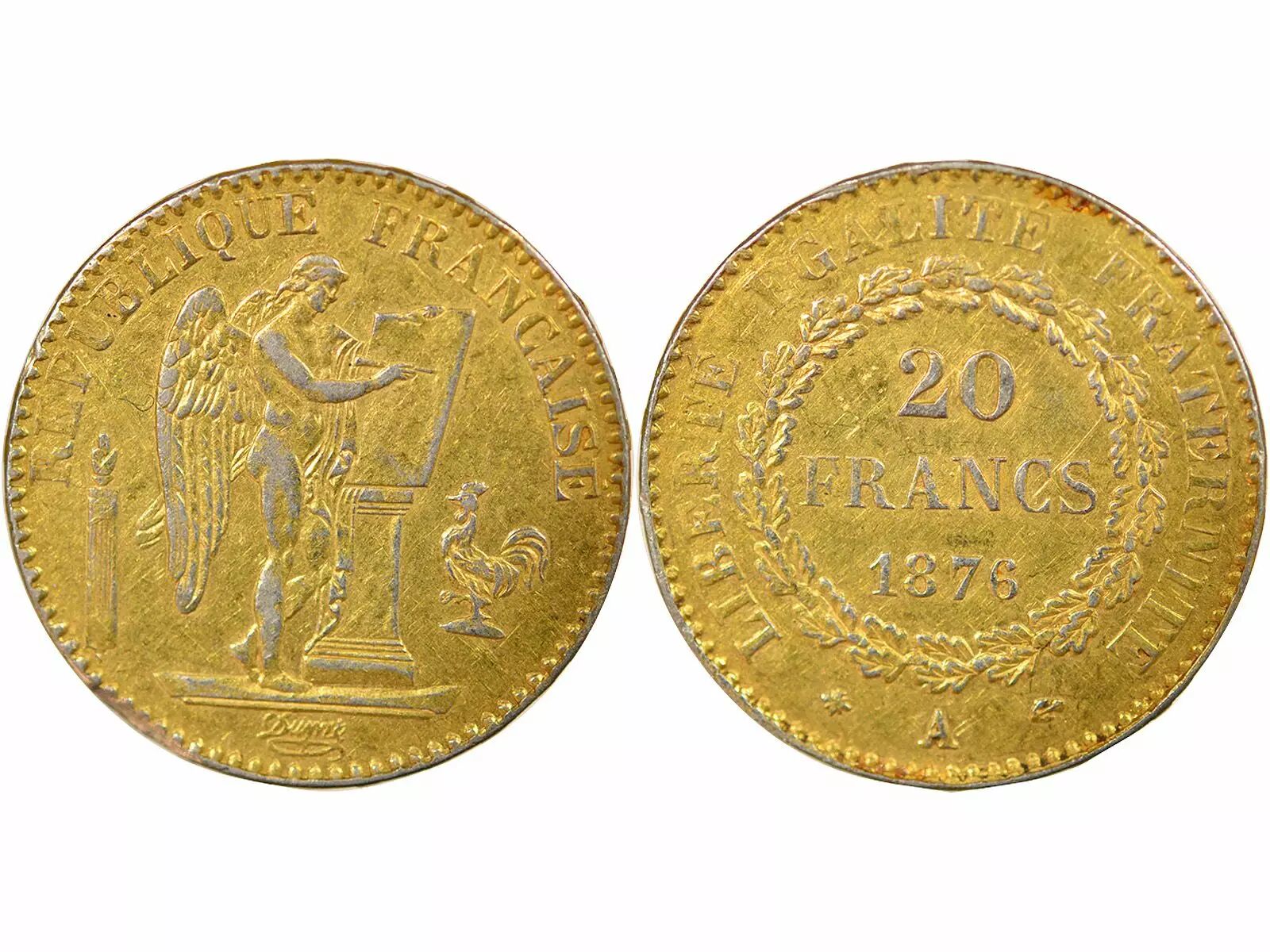 Pièce France 20 Francs Platine, Génie, Contrefaçon d'époque - 1876 A Paris