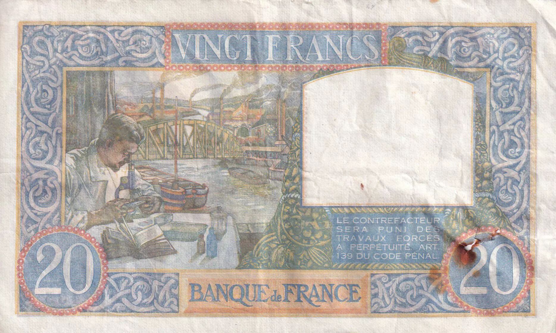Home > > France 20 Francs - Science and Industry - 03-04-1941 - Serial A.3505 - P.92