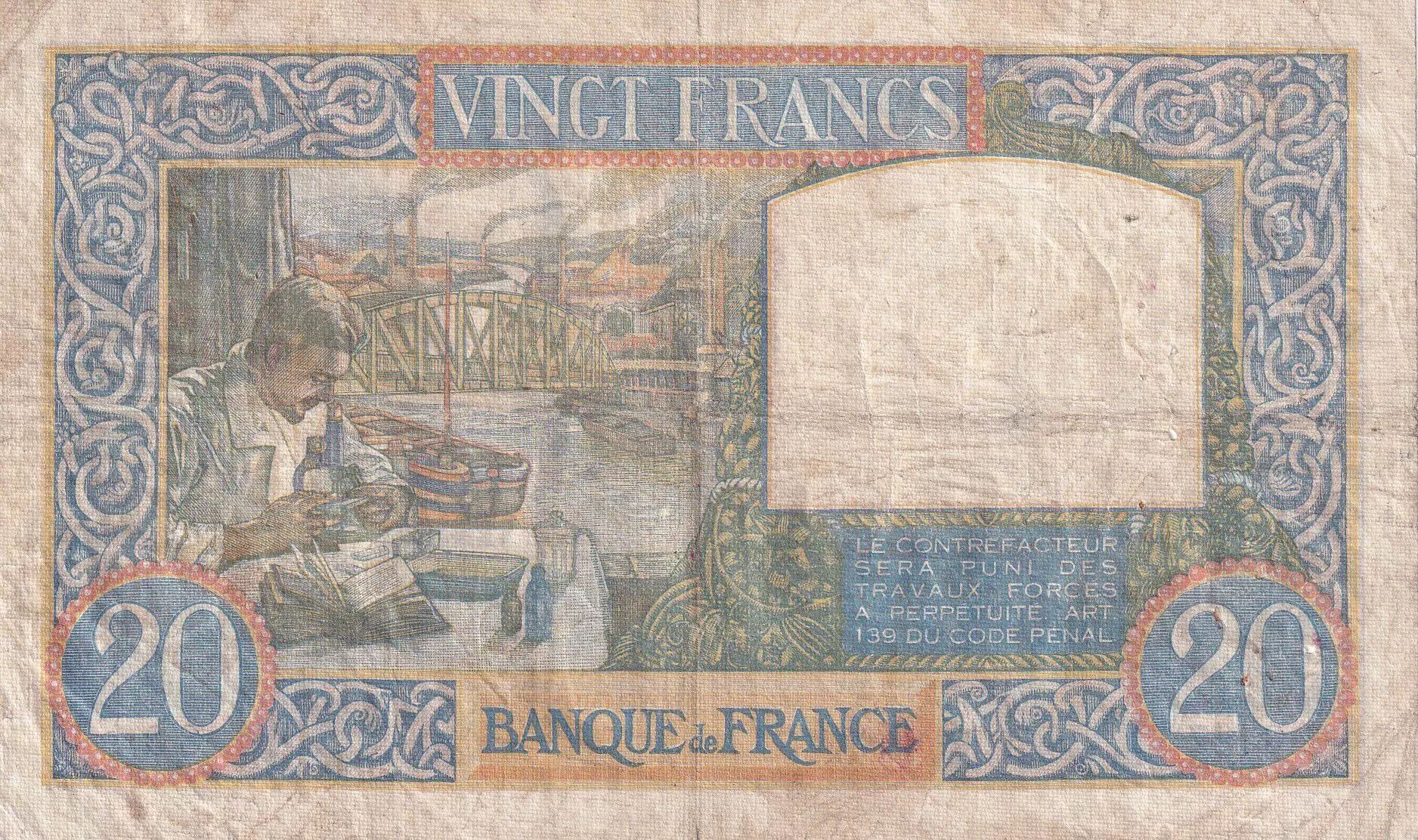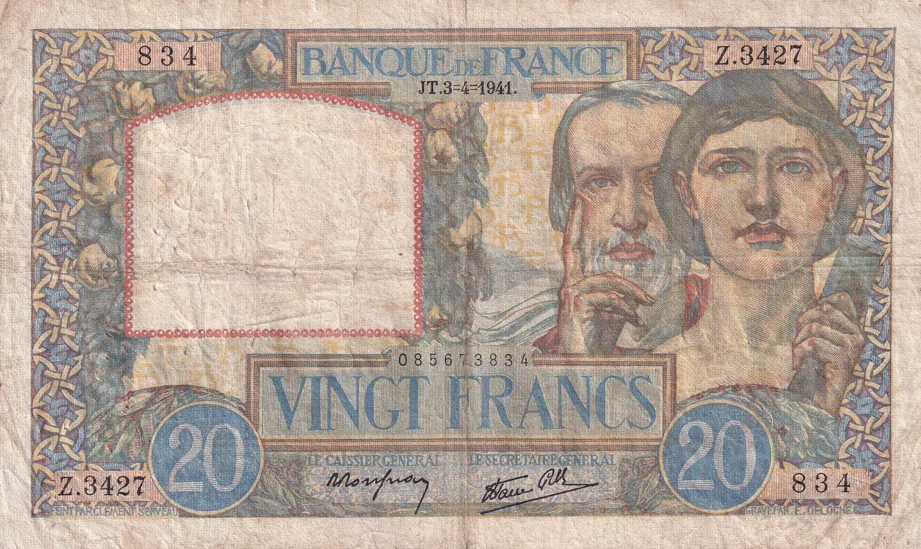 Home > > France 20 Francs - Science and Industry - 03-04-1941 - Serial Z.3427 - P.92