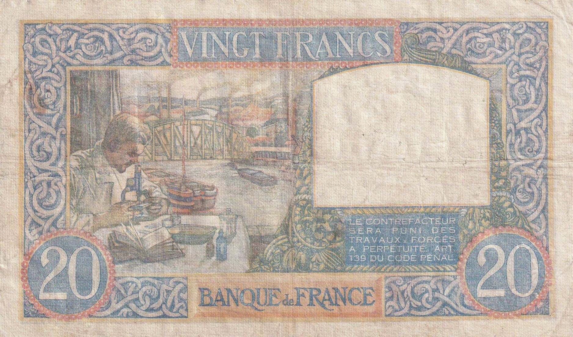 Home > > France 20 Francs - Science and Industry - 04-12-1941 - Serial G.6752 - P.92