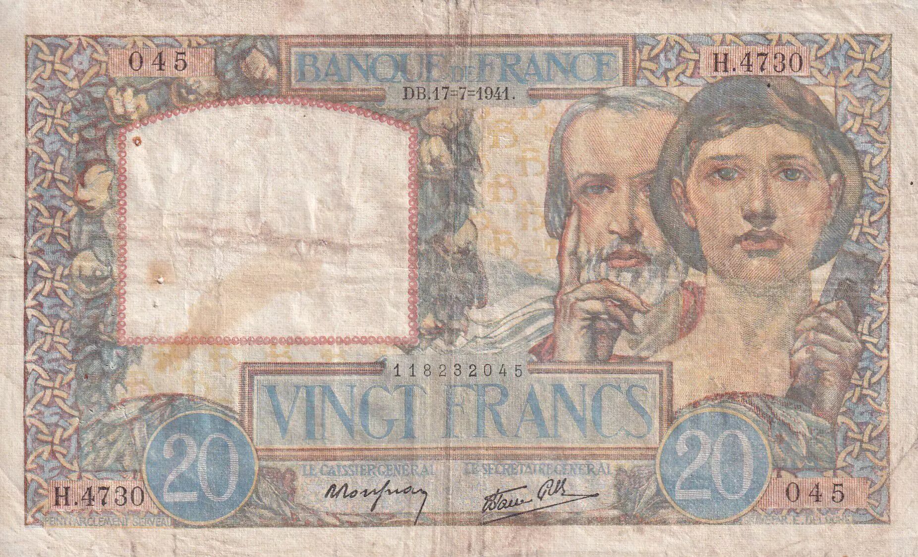 Home > > France 20 Francs - Science and Industry - 17-07-1941 - Serial H.4730 - P.92