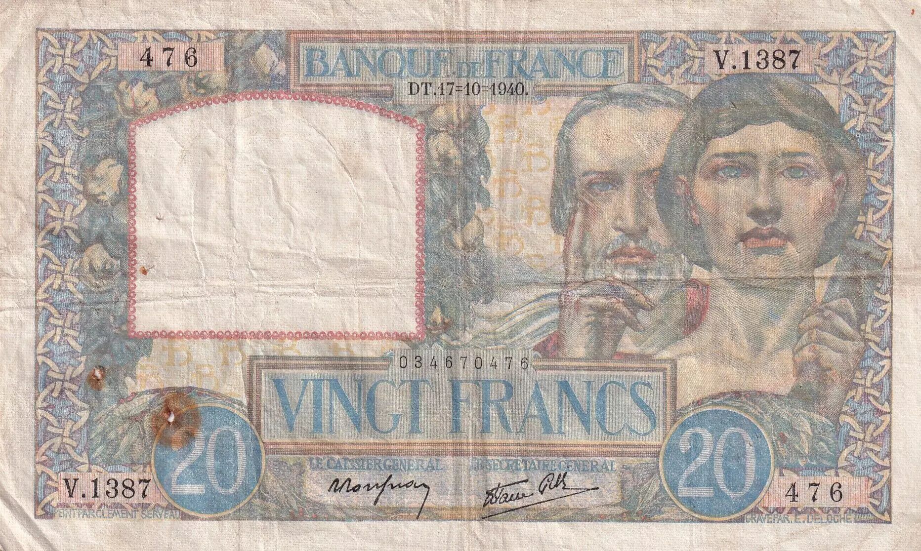 Home > > France 20 Francs - Science and Industry - 17-10-1940 - Serial V.1387 - P.92