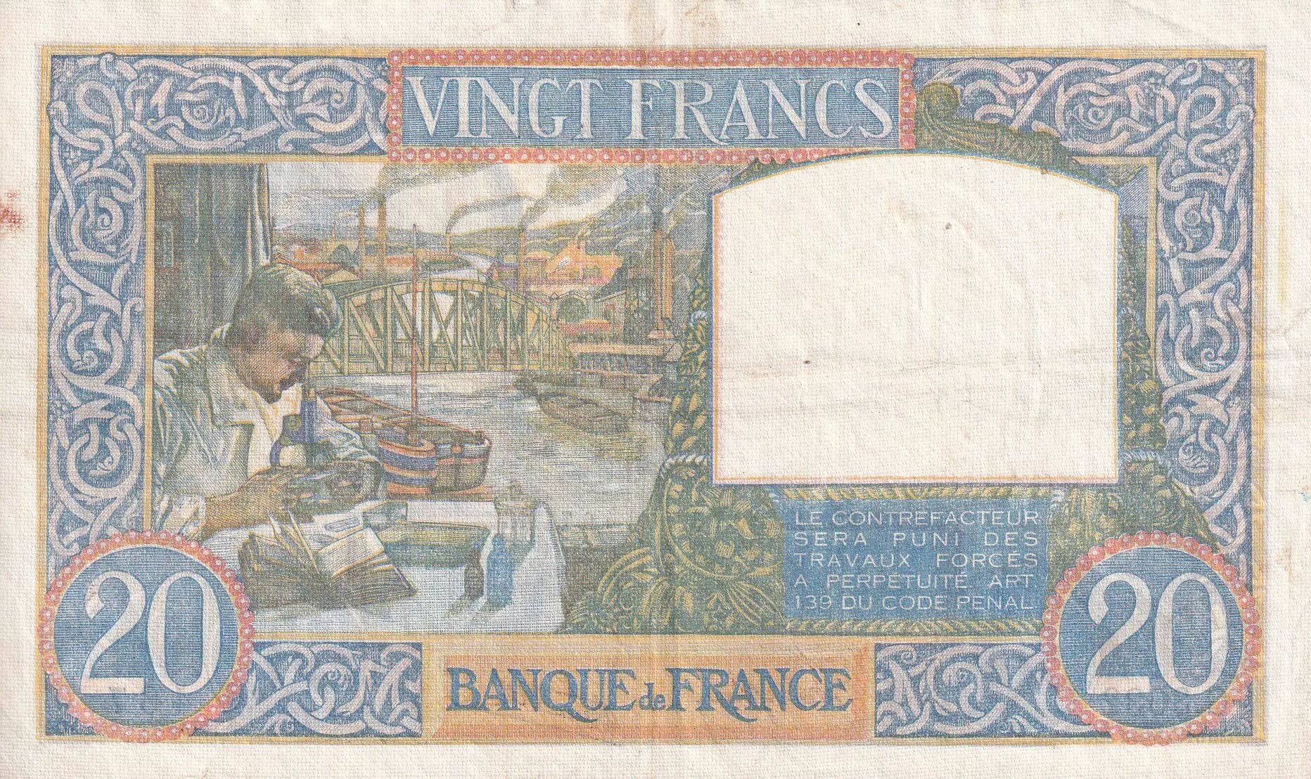 Banknote France 20 Francs - Science and Industry - 20-02-1941 - Serial G.3032 - VF to XF - P.92
