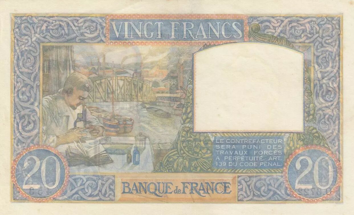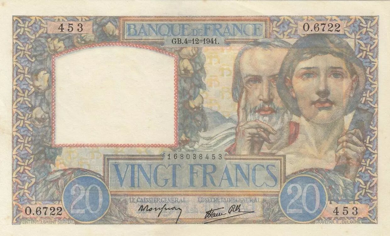Banknote France 20 Francs Science and Labour - 04-12-1941 - Serial C.6722