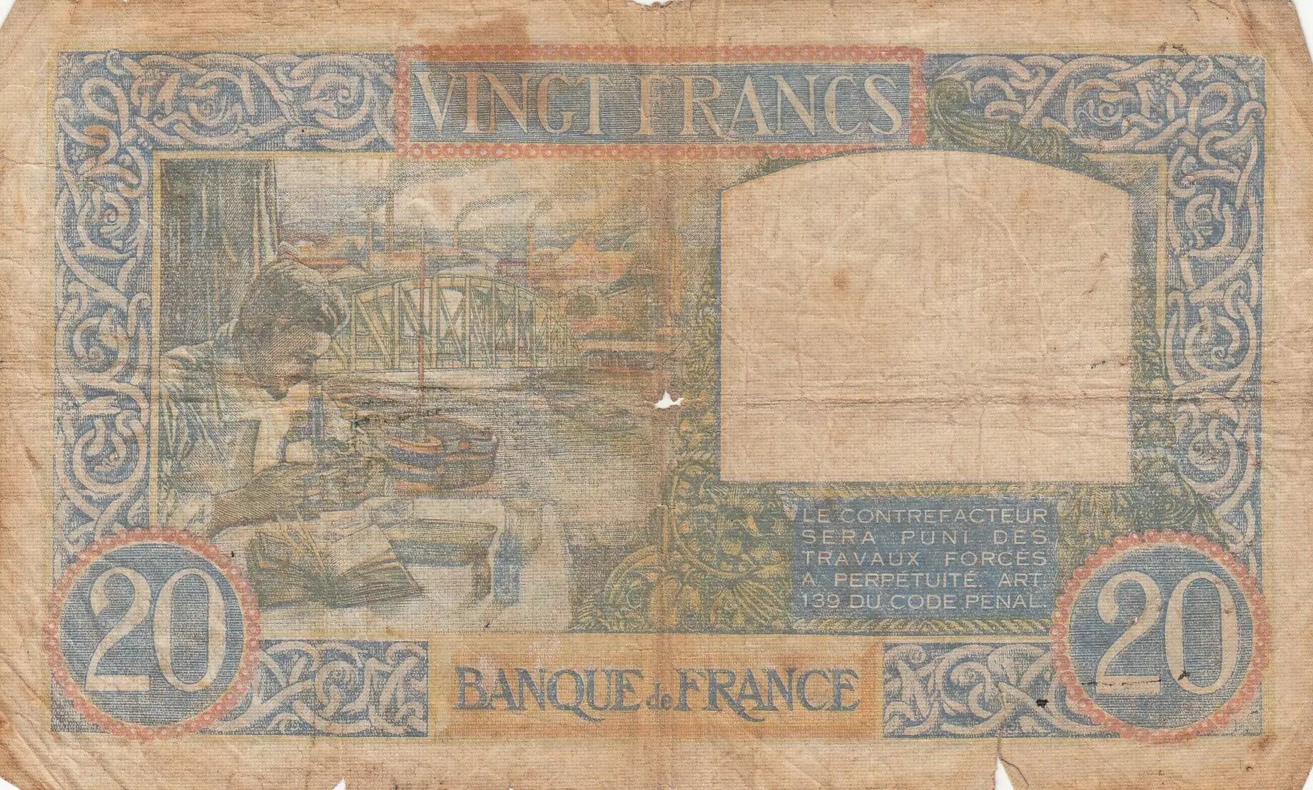 Banknote France 20 Francs - Science and work - 17-10-1940 - Serial P.1677