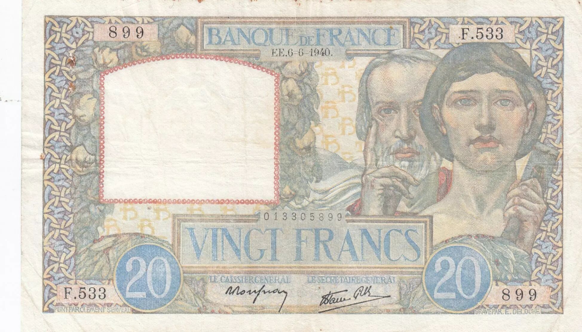 Accueil > Archivage > France 20 Francs Science et Travail - 06-06-1940 Série F.533