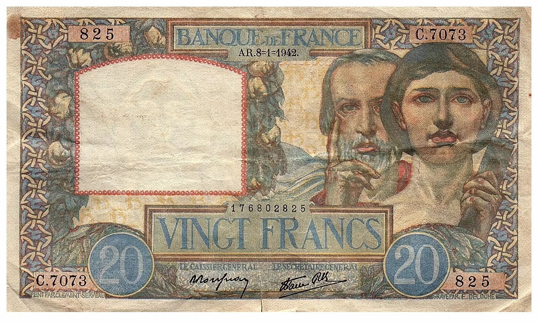 Accueil > Archivage > France 20 Francs - Science et Travail - 08-01-1942 - Série C.7073 - F.12.21