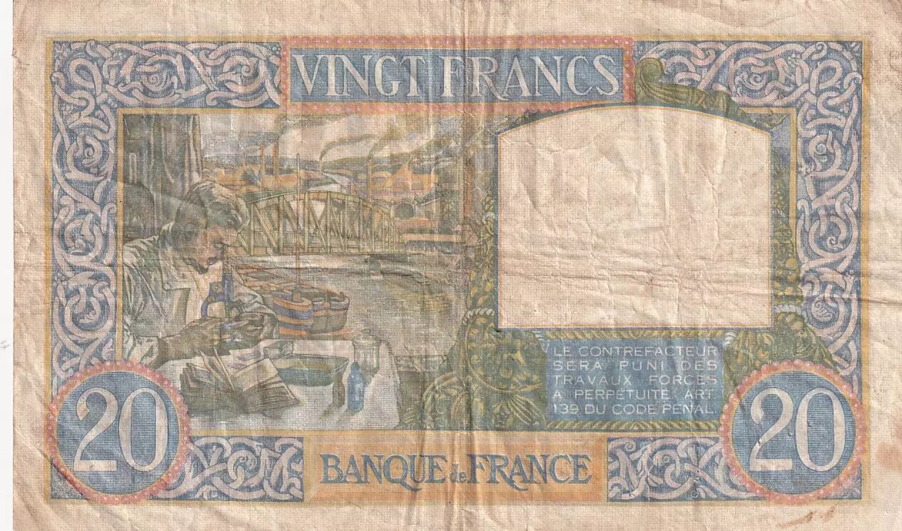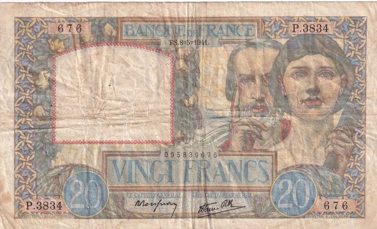 Accueil > Archivage > France 20 Francs Science et Travail - 08-05-1941 - Série P.3834