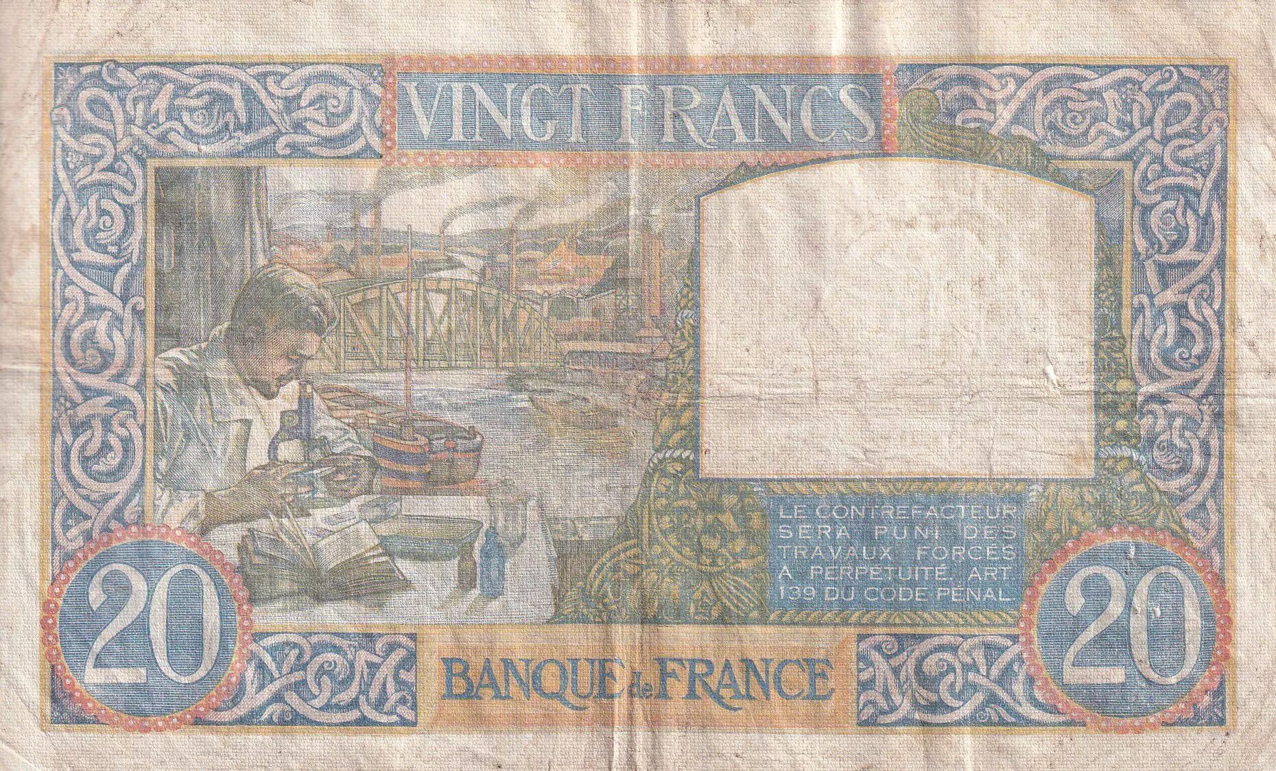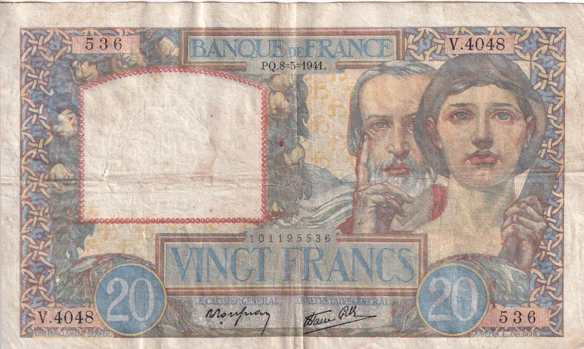 Accueil > Archivage > France 20 Francs - Science et Travail - 08-05-1941 - Série V.4048 - F.12.14