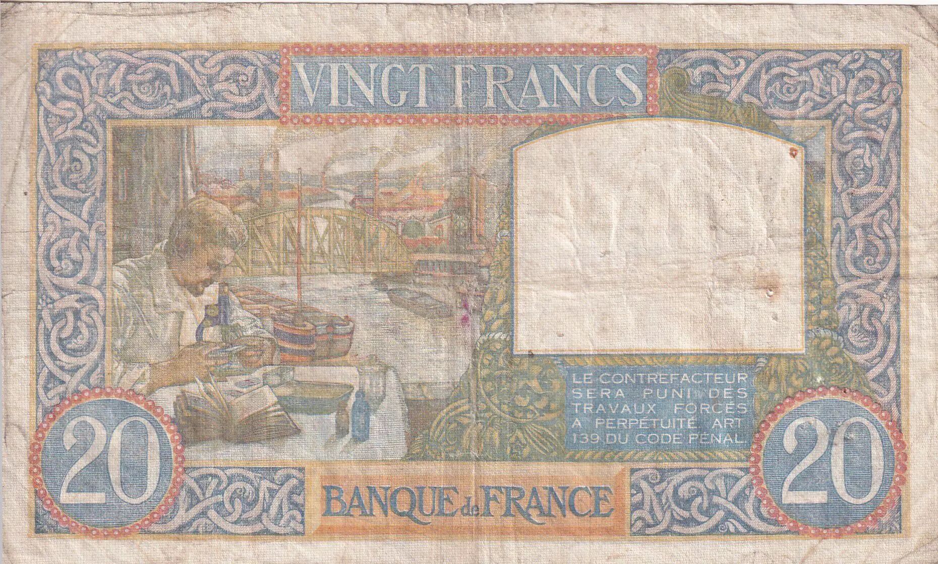 Accueil > Archivage > France 20 Francs - Science et Travail - 17-07-1941 - Série H.4730 - F.12.16